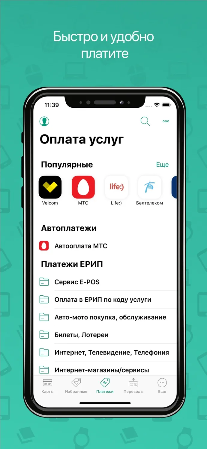 - ✅ Оплата через ЕРИП — доступ к единой системе расчетов